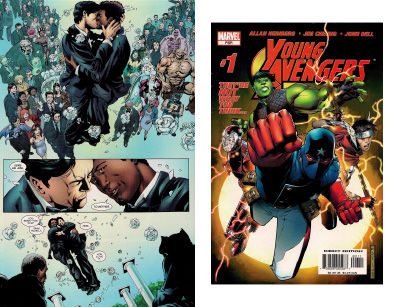 La revolución que empezó en los 60 ha seguido gestándose, y el resultado ha sido absolutamente sorprendente. Ahí tenemos colecciones tan innovadoras y polémicas como Young Avengers, en la que encontramos a un grupo de Jóvenes Vengadores que imitan a los superhéroes clásicos. Entre ellos están Wiccan y Hulkling (al principio versiones juveniles de Thor y Hulk), la pareja gay por excelencia de Marvel. Aunque inicialmente al público le costó mucho aceptar que estos dos chicos podían amarse y estar juntos, al final ambos se han convertido en personajes emblemáticos.